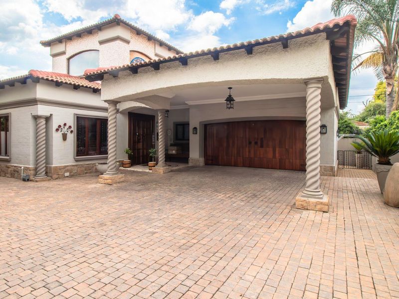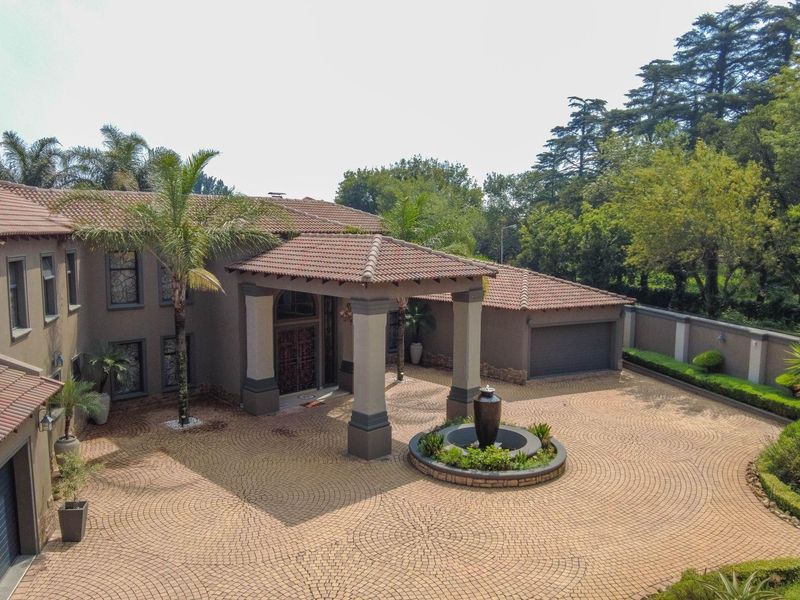 Entertain effortlessly on nearly 2,000 m² of manicured grounds, with poolside views and a patio featuring built-in pizza oven, rotisserie and braai; five beds, five baths, six-car garage.