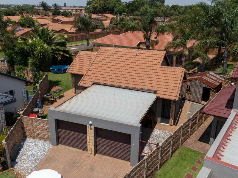 Entertain effortlessly on the covered patio with built‑in braai, minutes from East Rand Mall and OR Tambo; secure complex with communal pool, two bedrooms, two baths, double covered parking.