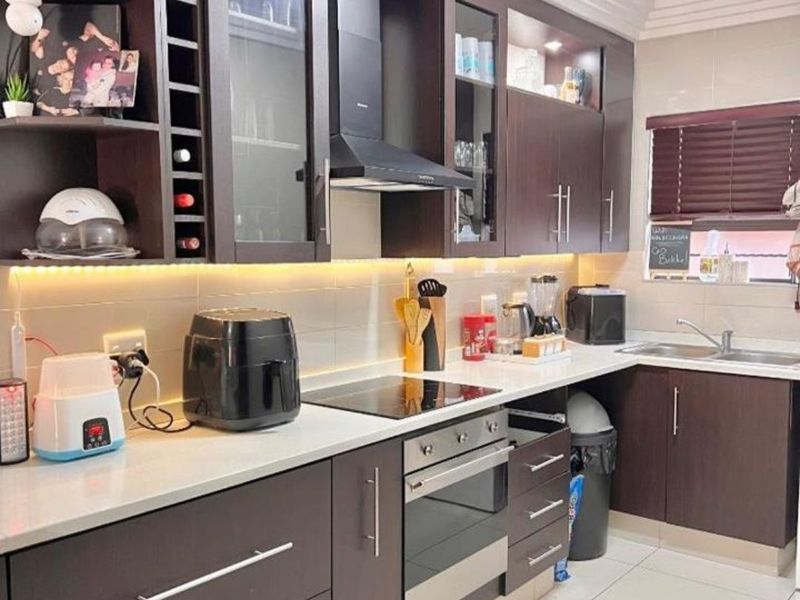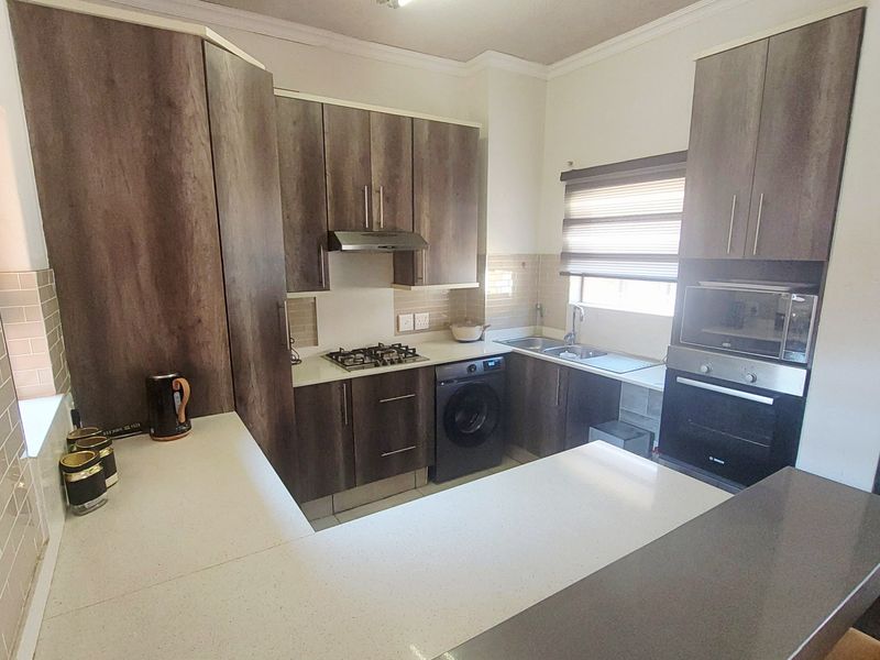Enjoy easy access to East Rand Mall and OR Tambo from this modern apartment — Caesarstone kitchen, built-in braai patio and private established garden. Two beds, two baths, double covered parking.