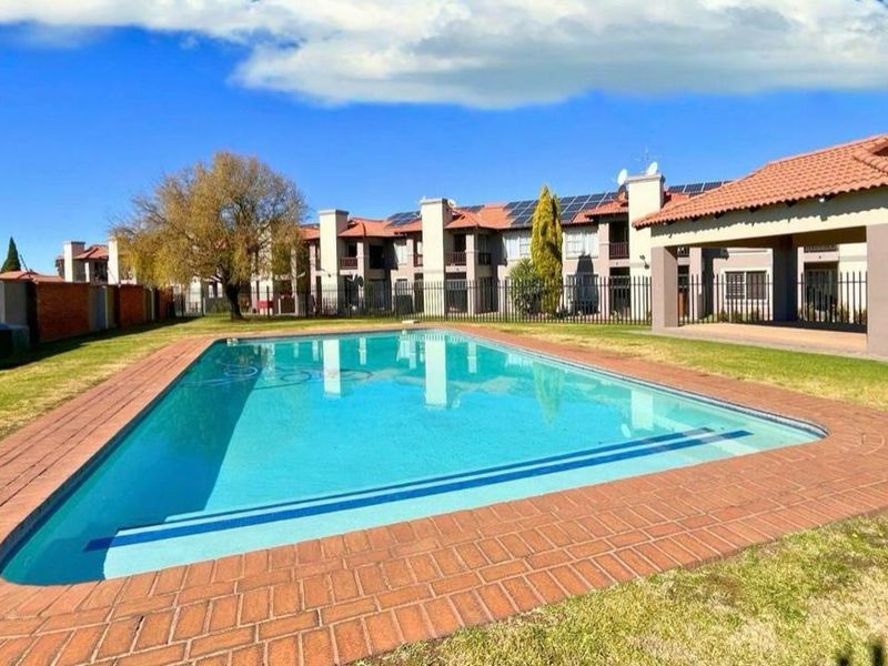 Low-maintenance, community living in a peaceful, well-maintained complex with clubhouse and pool — sunlit first-floor townhouse featuring an enclosed patio with built-in braai, two bedrooms, one bathroom and carport.