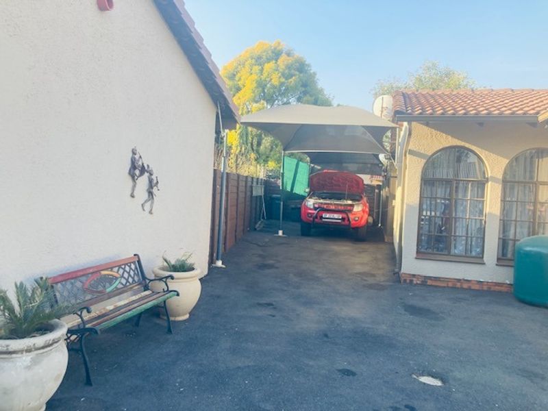Relaxed family living in an established suburb with a sparkling pool and Lapa braai area; two incomplete flatlets offer rental potential. Three bedrooms, two bathrooms, four covered carports.