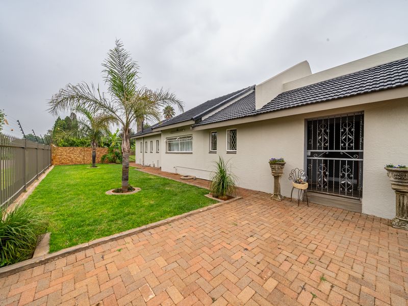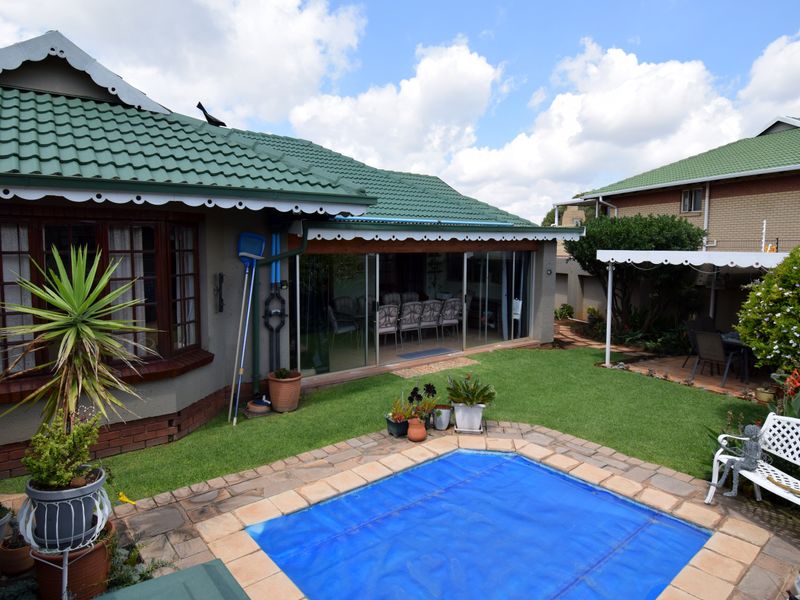 Entertain effortlessly in Kenleaf, Brakpan — lapa with built-in braai overlooking sparkling pool and expansive garden; five bedrooms, 3.5 bathrooms and six covered bays.