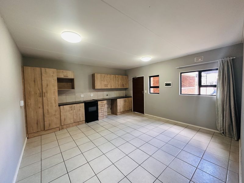 Relaxed suburban living in Kenleaf, Gauteng — peaceful streets, quick access to schools, shops and highways. Two-bedroom, one-bathroom brick home with a private garden and covered parking.