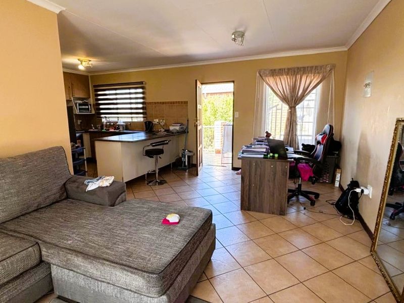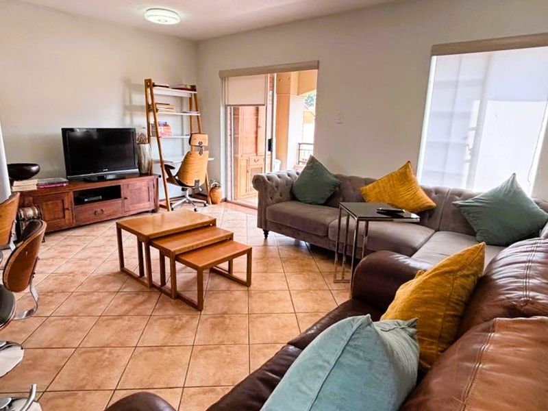 Enjoy relaxed living in Secure Eco Park Estate with parks, pool, tennis courts and communal braai — two patios with built-in braais and outside room; 2 beds, 2 baths, double garage.