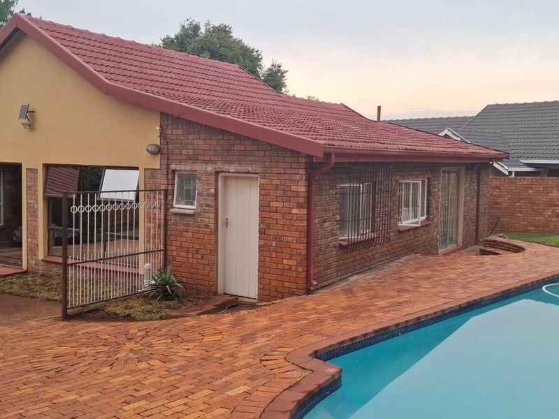 Family-focused entertainers' haven in Eldoraigne, close to Mulders Mile, with a large outdoor lapa and pool, secure gated yard, three bedrooms, two bathrooms and single garage.