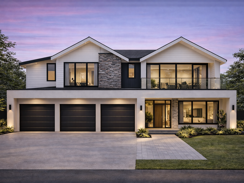 Family-focused secure estate living with seamless indoor–outdoor flow and a modern kitchen ideal for entertaining; private balcony retreat, upstairs bedroom wing, guest en-suite — four beds, 2.5 baths, single garage.