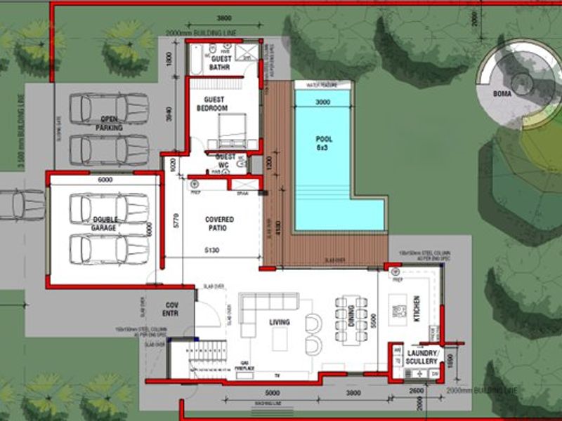 Contemporary family living in Fountainbrook Estate, designed for entertaining around a pool and BOMA firepit; open-plan living, covered patio and double garage.