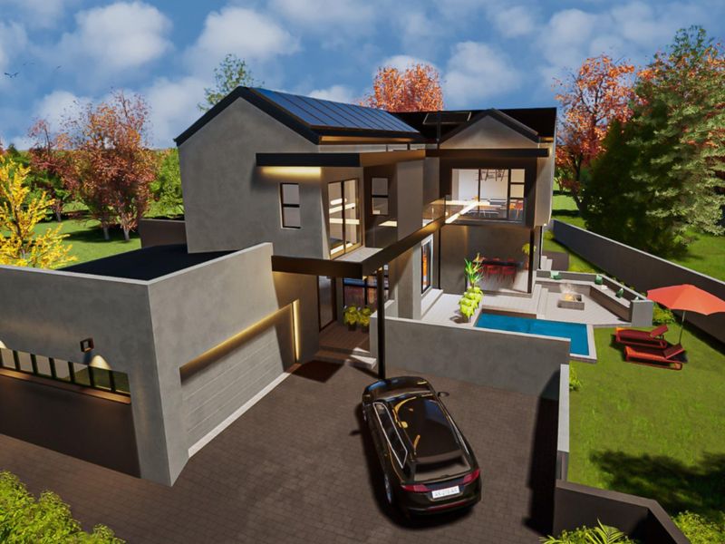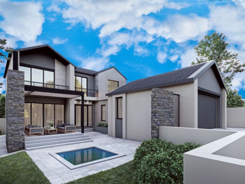 Design your dream family home in Fountainbrook Estate, close to top schools and shopping, with a covered patio and built-in braai — five bedrooms, five bathrooms, double garage.