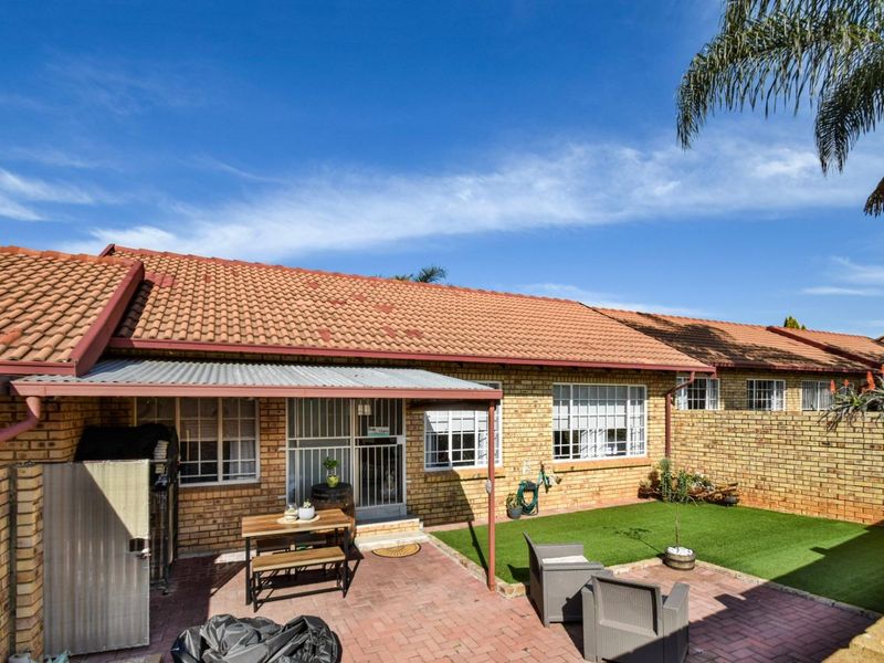 Low-maintenance lock-up-and-go townhouse in sought-after Highveld Estate, minutes from major highways and amenities. Private garden with covered patio and built-in braai — two beds, one bath, garage.