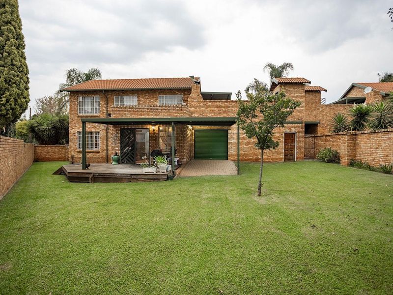 Relaxed family living in Highveld's quiet, well-kept complex with a private garden and dedicated boma for entertaining; three bedrooms, renovated main en-suite, and extra-long double garage.