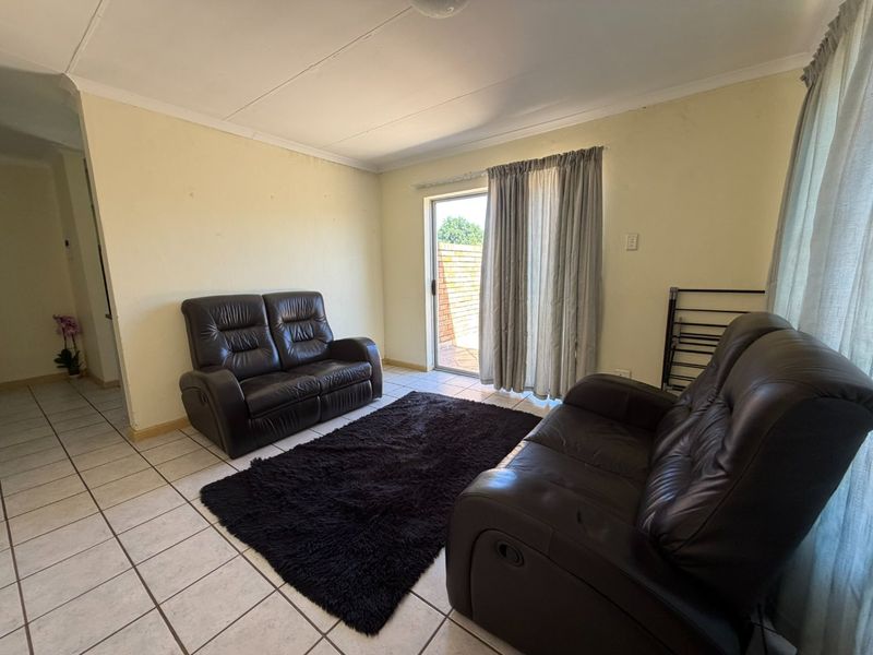 Relaxed, low‑maintenance living in a well-kept complex near amenities with communal pool and lapa; bright open-plan lounge and private garden for morning coffee. Two bedrooms, one bath, covered garage.