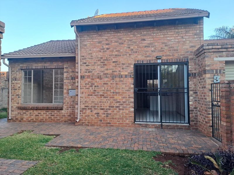 Relax in secure Highveld Estate living, close to amenities; this corner townhouse boasts a rare wraparound garden and covered braai patio — two bedrooms, one bathroom, extra-long garage.