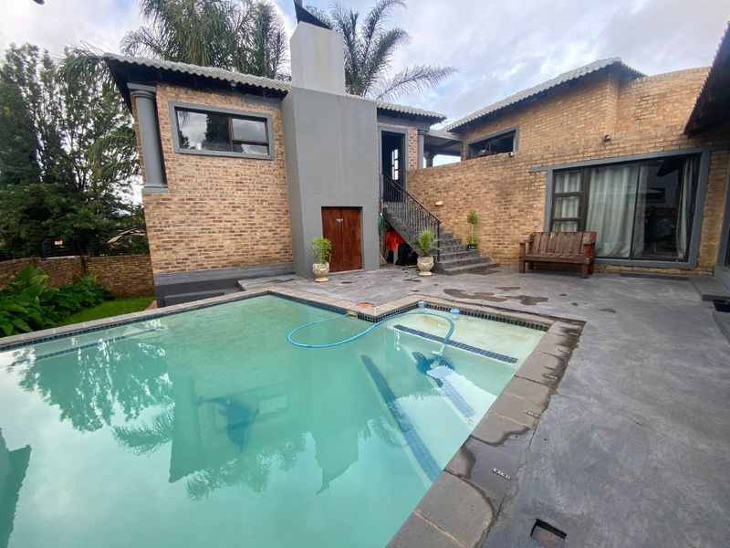Entertainer's family retreat in Highveld's boomed area, featuring a large pool and entertainment lapa with built-in braai and jacuzzi. Five bedrooms, two bathrooms and triple garage.