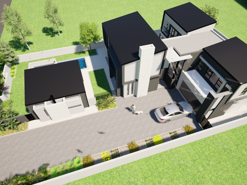 Designer, family-focused living in Midstream Heights with a turnkey, all-inclusive build package — architect, approvals and project management included. Features pool, covered boma and four garages.