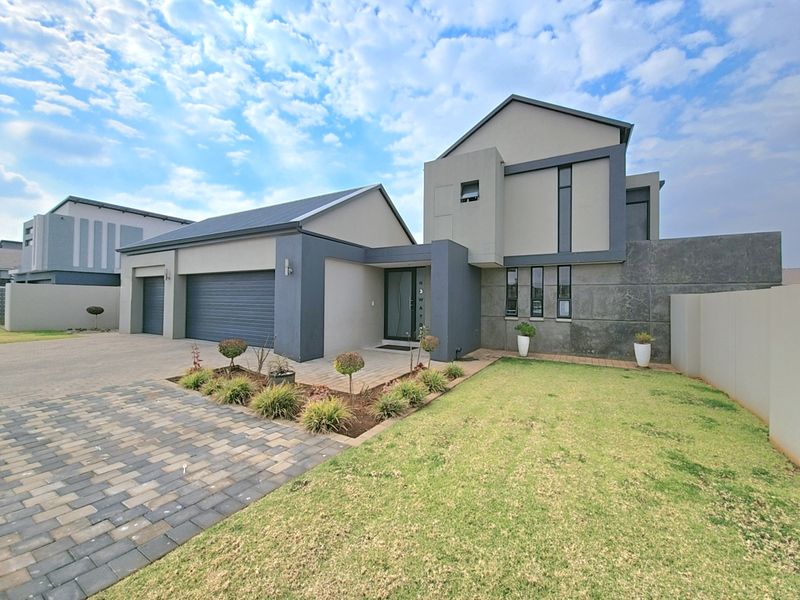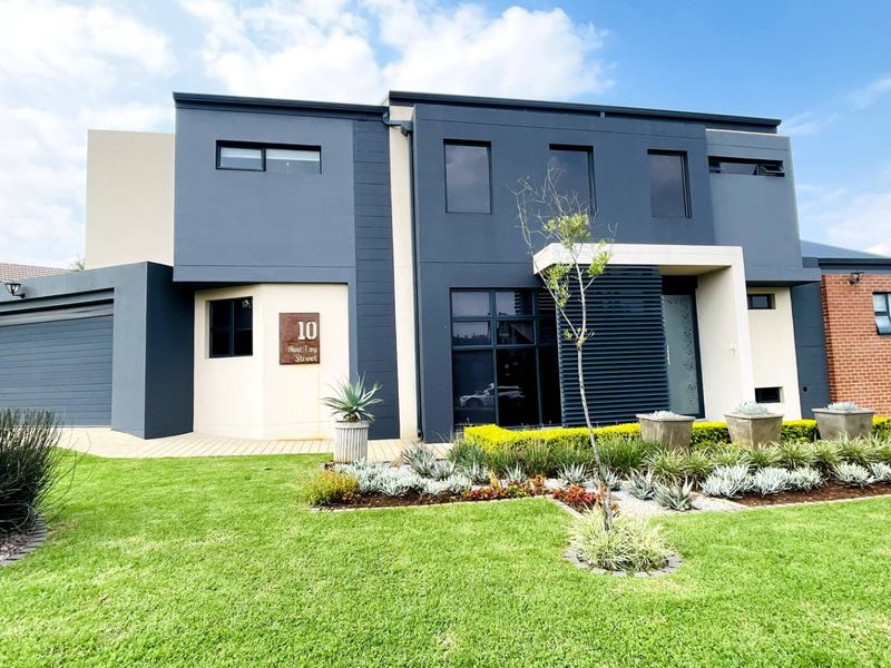 Geometric modern family home in Midstream Meadows with double-volume entrance, poolside open-plan braai and lounge, versatile ground-floor ensuite, and oversized balcony for sunset drinks. 3 beds, 2.5 baths.