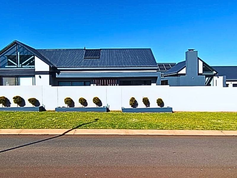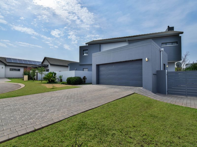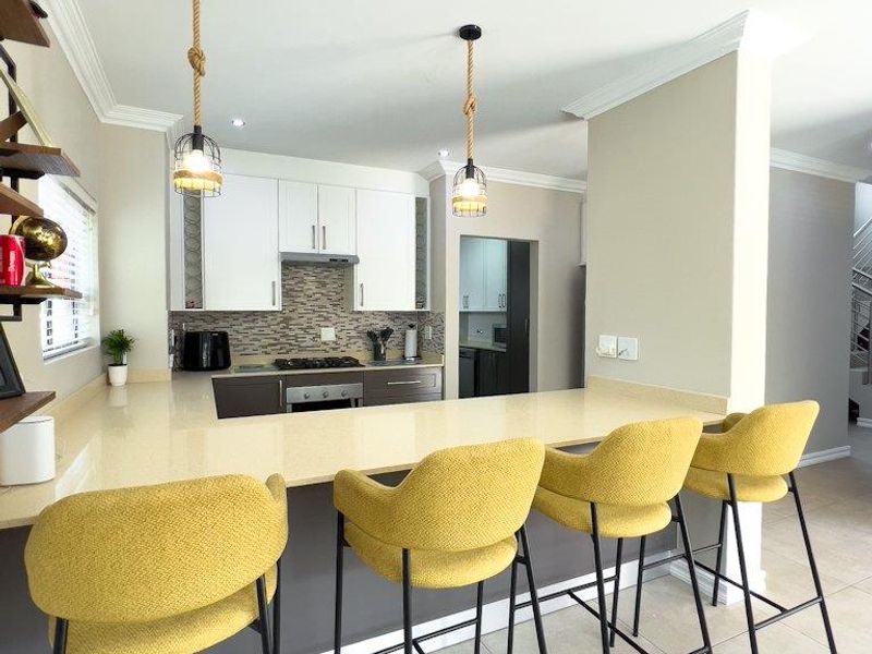 Relaxed family living in a quiet, leafy neighbourhood with open-plan flow, shaded patio and built-in braai—rented solar backup included. Four bedrooms, 2.5 baths and double garage.