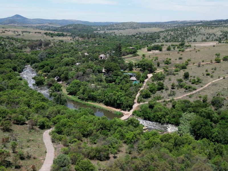 Escape to solitary living 7km down a gravel road atop a koppie in Crocodile River Reserve, with sweeping views across Egoli Grassland to the Magaliesberg and free-roaming game.