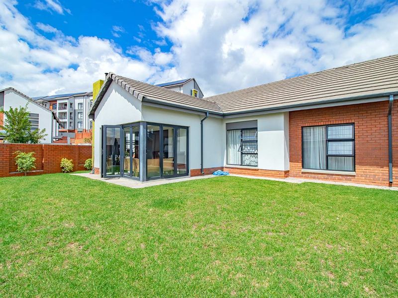 Family-focused living close to shops, schools and the Gautrain bus route, with a private corner garden, communal pool, children's play area, three bedrooms, two baths and a double garage.
