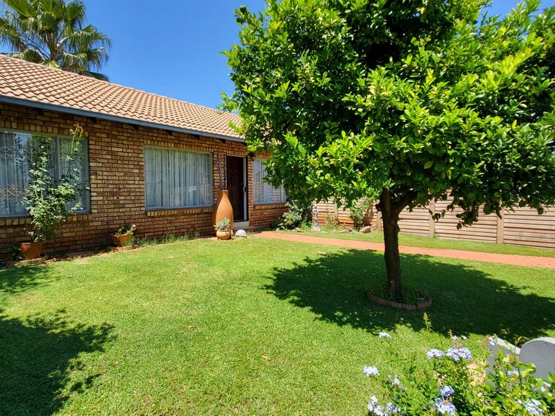 Easy entertaining in Robyn Park, Rooihuiskraal North — communal pool, built-in braais and private front/back gardens. Two-bedroom, two-bath townhouse with double garage near Mall@Reds.