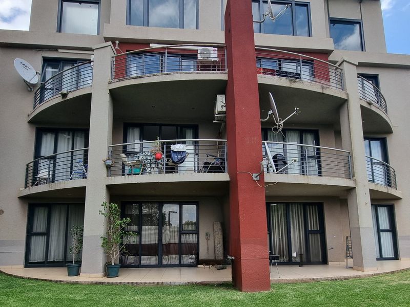 Resort-style living at The Manhattan—communal pool, 24-hour security and leafy walkways—private garden and covered patio with built-in braai. Three beds, two baths; close to schools and shopping.