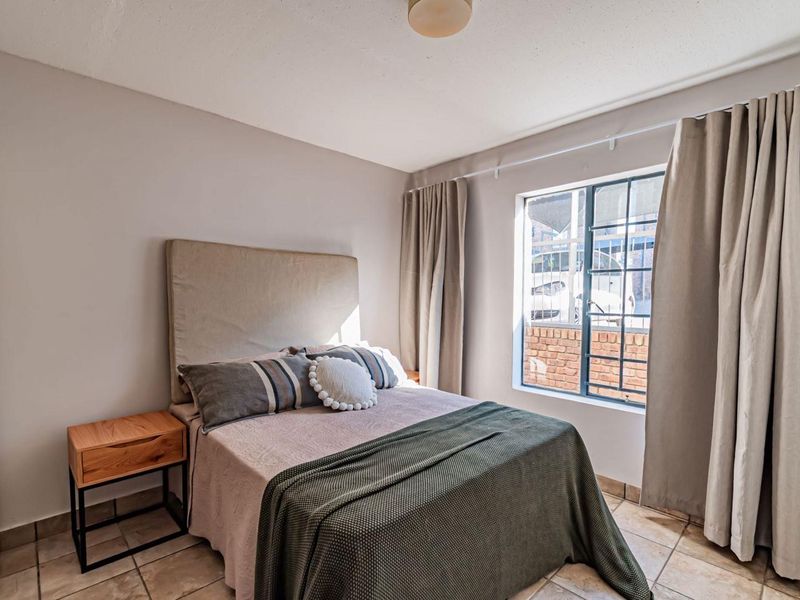 Lock-up-and-go living in secure Scarlet Park, Rooihuiskraal North — close to Mall@Reds and parks. Open-plan layout with garden patio for entertaining; two bedrooms, one bathroom, two covered bays.