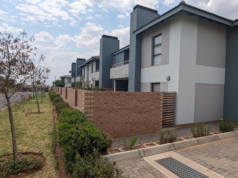 Secure estate living with effortless entertaining — open-plan kitchen flows onto a covered patio, steps from Curro High, Thatchfield golf and malls. Three bedrooms, two bathrooms, double covered parking.