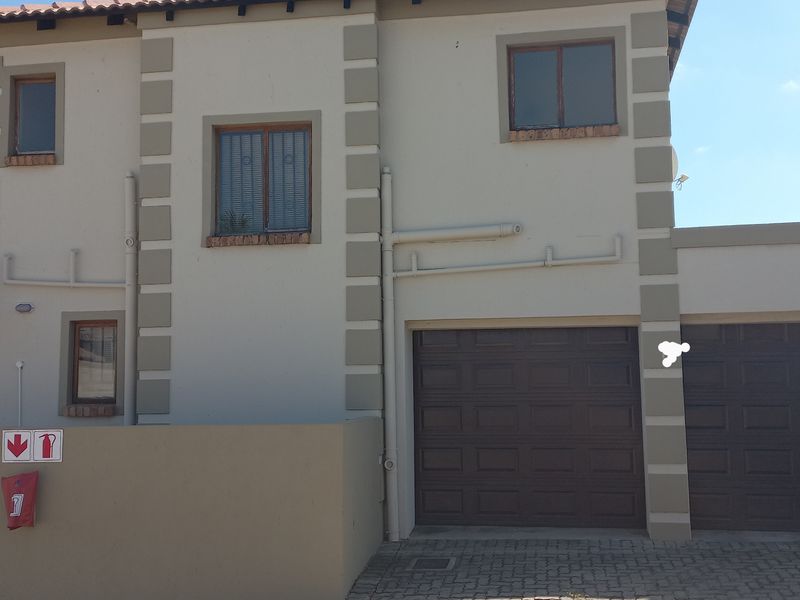 Effortless entertaining on a huge enclosed 36m² balcony with AstroTurf, minutes from Blue Valley Mall and Centurion CBD — three-bedroom townhouse with automated garage and solar battery backup.