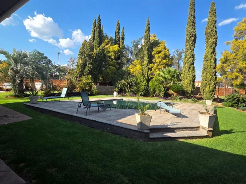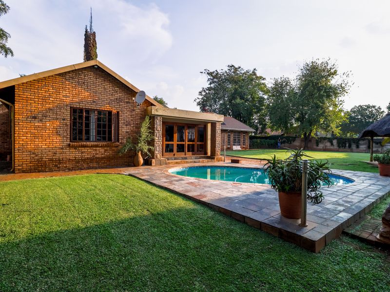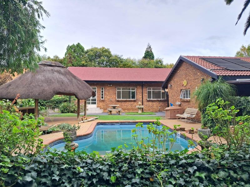 Entertainer's family retreat near Springvale Primary with quick N1/N14 access, expansive garden, pool and outdoor braai, plus solar power and double garage — five bedrooms, three-and-a-half baths.