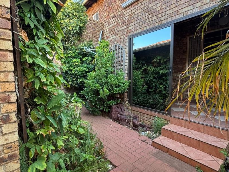 Commuter-friendly Zwartkop living near Centurion Mall and Gautrain, relax in a private garden and louvre-roof patio; pet-friendly duplex with three bedrooms, two bathrooms and single garage.