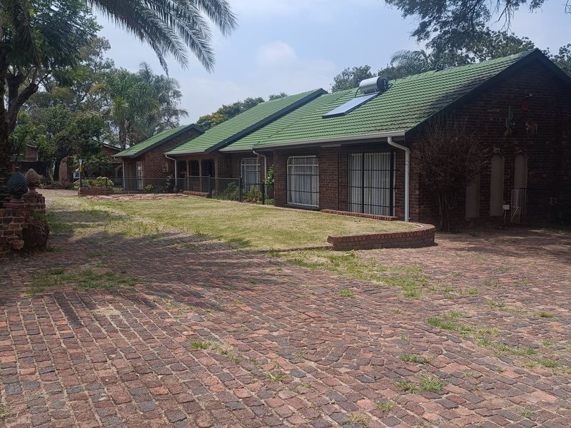 Riverside country living near Pretoria — 74ha farm with registered water rights on Krokodilspruit, ongoing rental income from four houses (10 beds, 8 baths) and workshops.
