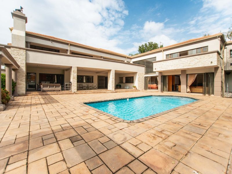 Entertain effortlessly in secure Dowerglen Ext 2/Essexwold gated community, with landscaped rose gardens, English pub-style entertainment room and covered patio leading to a solar-heated pool and self-contained flatlet.