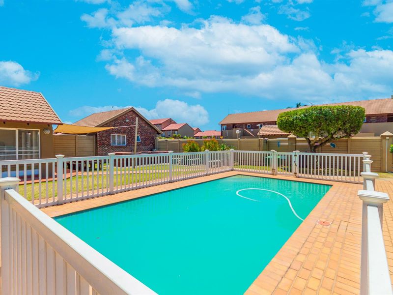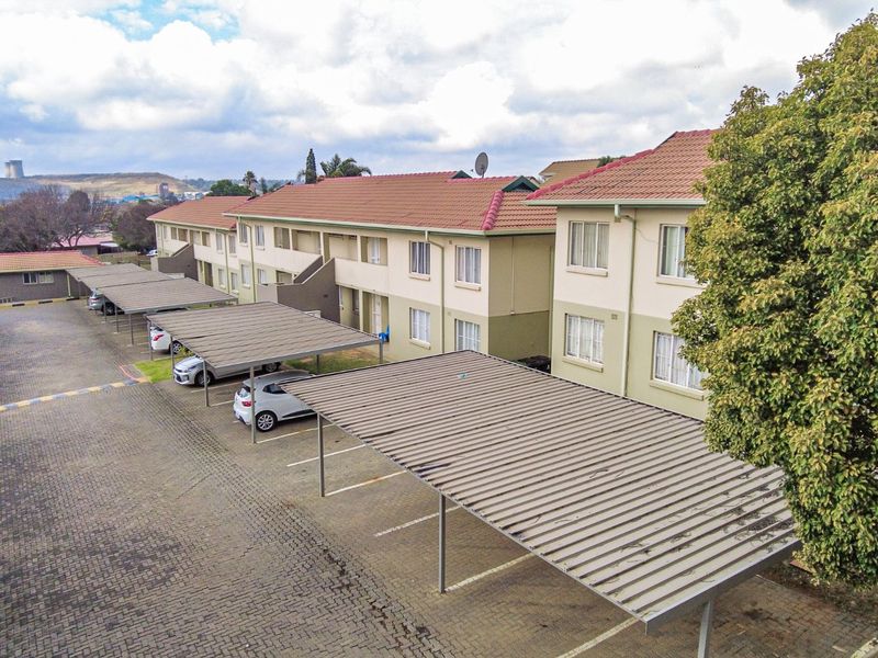 Relax in secure Edenglen living with leafy complex gardens and private garden — large open-plan kitchen with granite counters and breakfast nook. Two beds, two baths, covered carport.