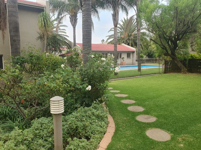 Enjoy secure, low-maintenance suburban living in Eden Glen, Edenvale, with tropical landscaping and communal pool; upstairs 2-bed, 2-bath apartment with modern kitchen and parking.