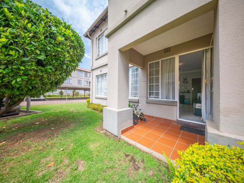Ideal starter in a secure complex near local shops and Greenstone Mall with easy highway access; includes a braai area — 2 beds, 1 bath, covered parking.