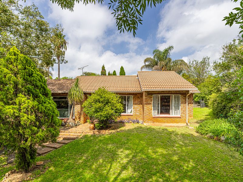 Entertainer's dream in a peaceful neighbourhood with pool and built-in braai overlooking the expansive 991sqm garden, open-plan living with fireplace and separate one-bedroom cottage — four beds, two baths, automated garage.