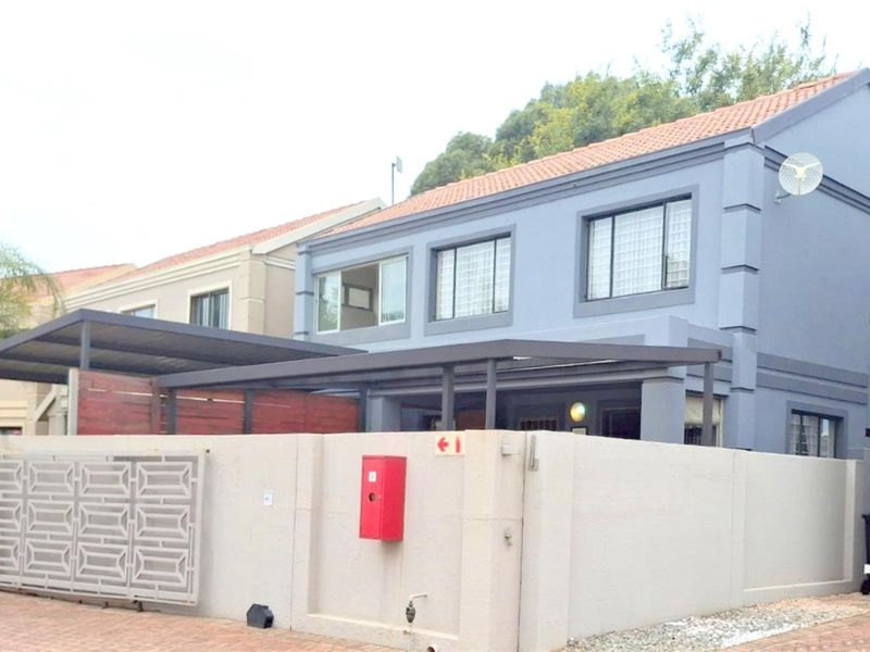 Secure boomed-off enclave in Buurendal, Edenvale — leafy communal gardens, modern open-plan living with built-in appliances and double covered parking. Two bedrooms, 1.5 baths.