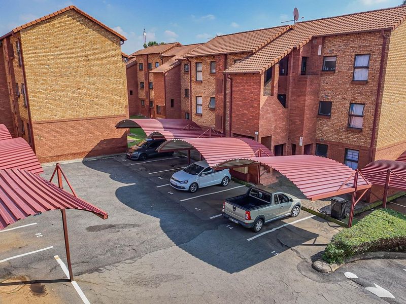 Effortless, secure estate living in Castle View, Germiston—shops, schools and transport nearby. Open-plan living with a modern kitchen and built-in cupboards; two bedrooms, one bath and covered carport.