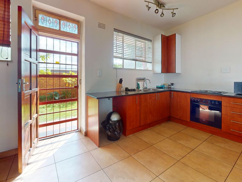 Effortless urban living with easy entertaining in Denlee, close to shops, schools and transport — ground-floor unit with private patio and built-in braai, two beds, one bath, two parking bays.