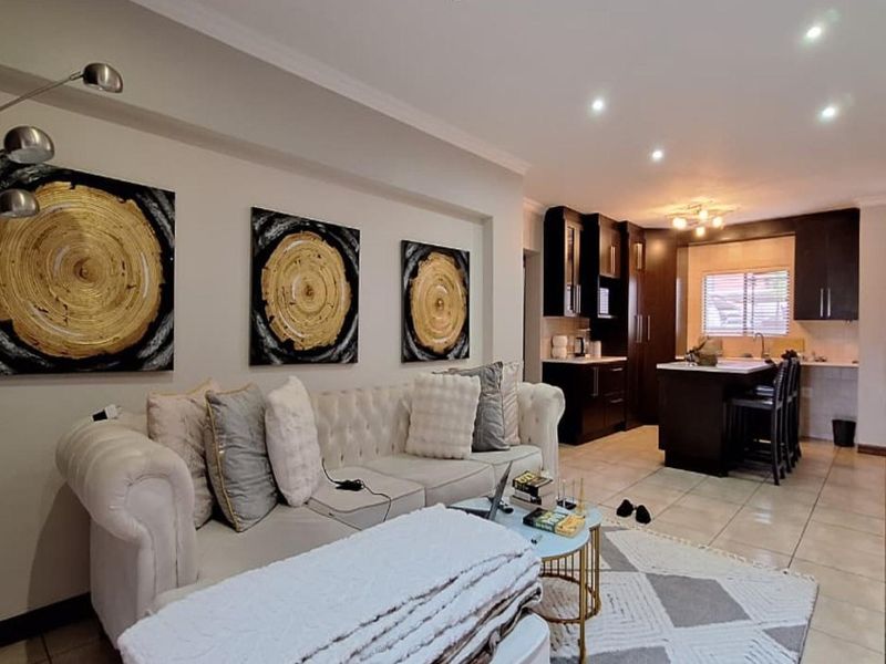Enjoy waterfront living at The Waterfront in Primrose, Germiston—secure complex with private patio and small garden, modern open-plan kitchen, three bedrooms and two bathrooms.