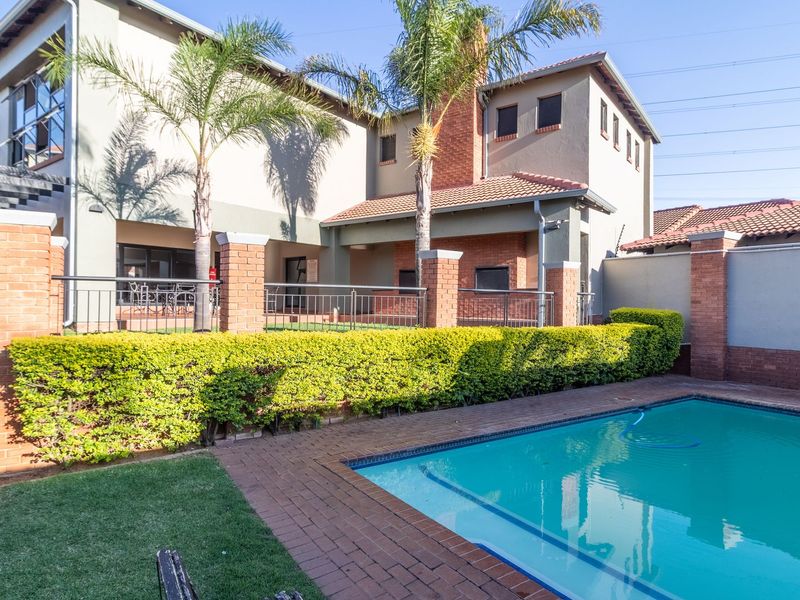 Entertainer's retreat in a peaceful suburb on a 1041m² stand with pool and boma for al fresco braai and firepit; includes 2-bed cottage, three-bed main house and triple Hollywood garage.
