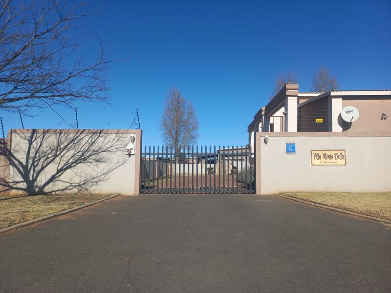 Convenient Bergsig townhouse near schools and shopping, featuring open-plan living, tiled porch, private low-maintenance garden and main-bedroom patio โ three bedrooms, three bathrooms and single garage.