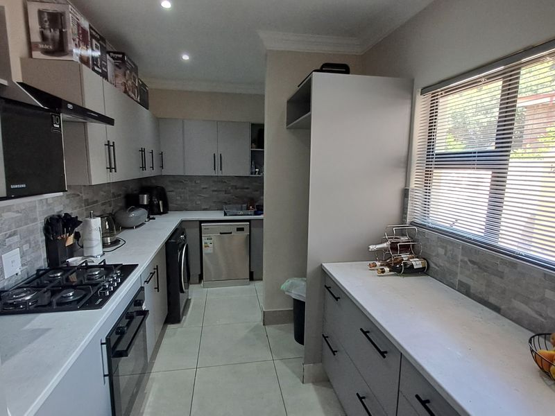 Family-focused living in Rensburg with expansive 2,380m² garden and easy access to schools and shops. Upstairs entertainment area with bar, jacuzzi and braai; three bedrooms, 1.5 baths.