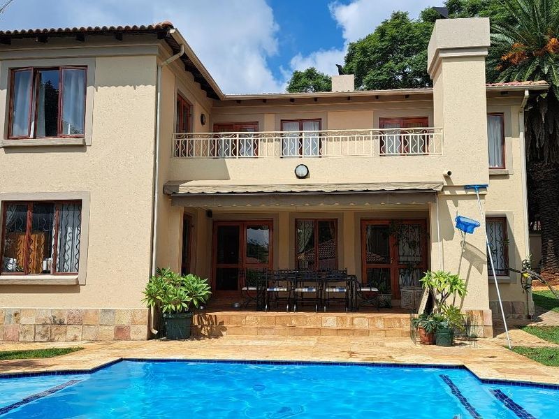Entertainer's home in a peaceful, family-friendly neighbourhood with sparkling pool and built-in braai, generous living spaces and self-contained 2-bed granny flat — five bedrooms, four bathrooms.