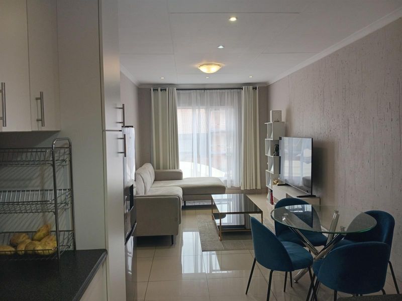 Low-maintenance living near Greenstone Mall, Lyndhurst Square and Edenvale Hospital, with easy N3/N12 access. Open-plan lounge flows to a private garden; two bedrooms, one bath, 24-hour security.