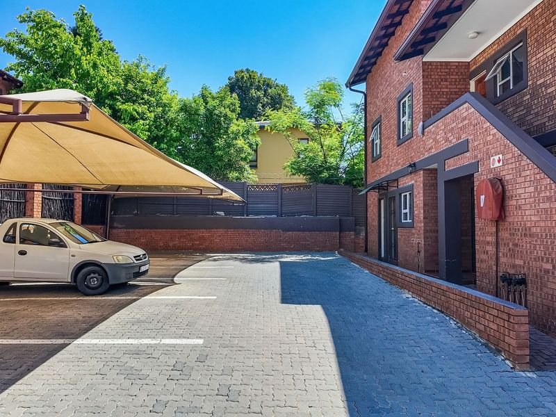 Centrally located urban pad in the secure Corfu complex on Lyndhurst 1st Road, minutes from Greenstone, Melrose Arch and Rosebank — ideal rental opportunity with one bedroom, bathroom and covered parking.