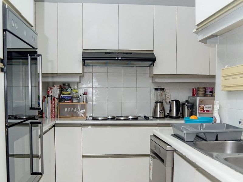 Ground-floor convenience in sought-after Lyndhurst Estate with communal pool and 24-hour controlled access; kitchen with under-counter oven and built-in cupboards, easy access to Lyndhurst Square — two beds, one bath.