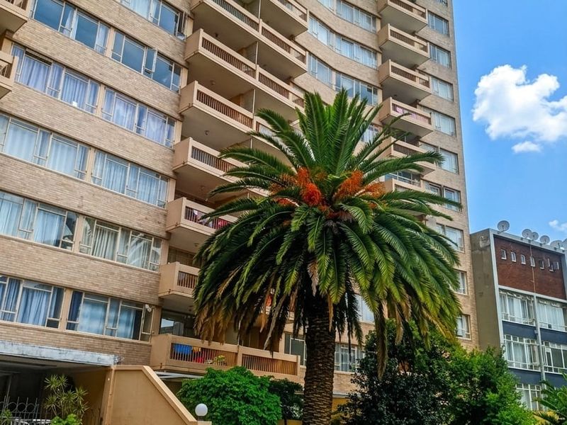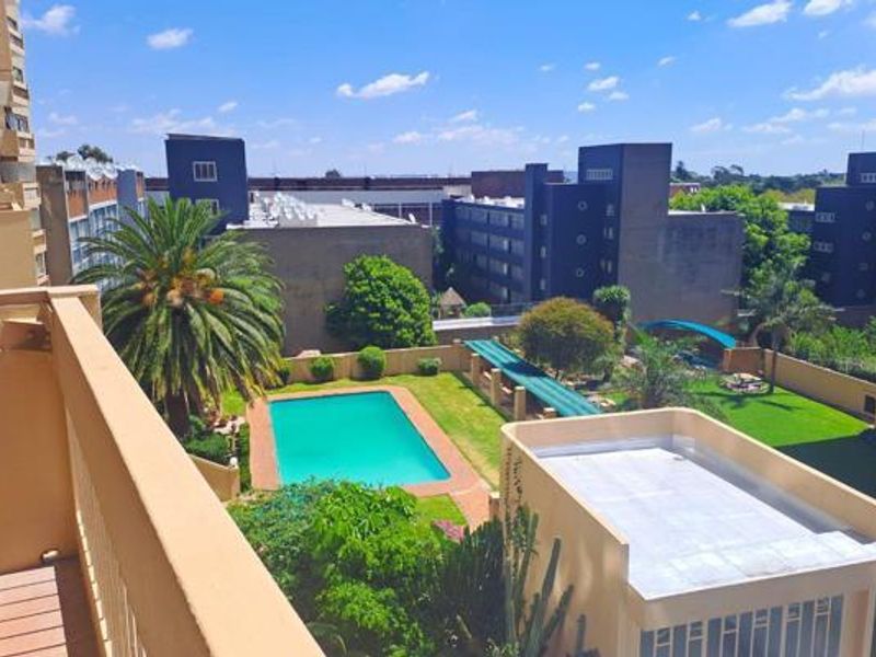 City-edge living in Parktown with easy access to Wits University, hospitals and transport; large open-plan lounge opens to balcony views, communal pool, braai area, two bedrooms, one bathroom, single garage.