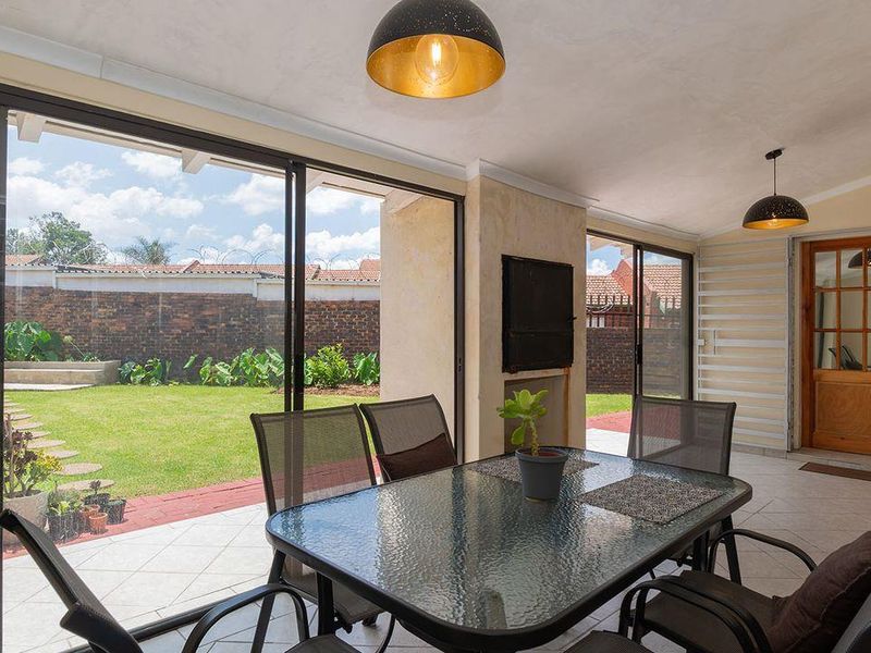 Enjoy relaxed living in Panorama Gardens, Kempton Park — steps from OR Tambo, with a large patio and built-in braai for entertaining, private garden, double garage, three bedrooms.