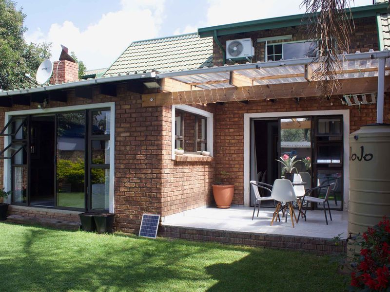 Lodge-style urban retreat offering city convenience and relaxed entertaining in a private garden with built-in braai. Modern kitchen, solar/water tanks; two bedrooms, two baths and double garage.