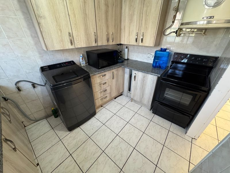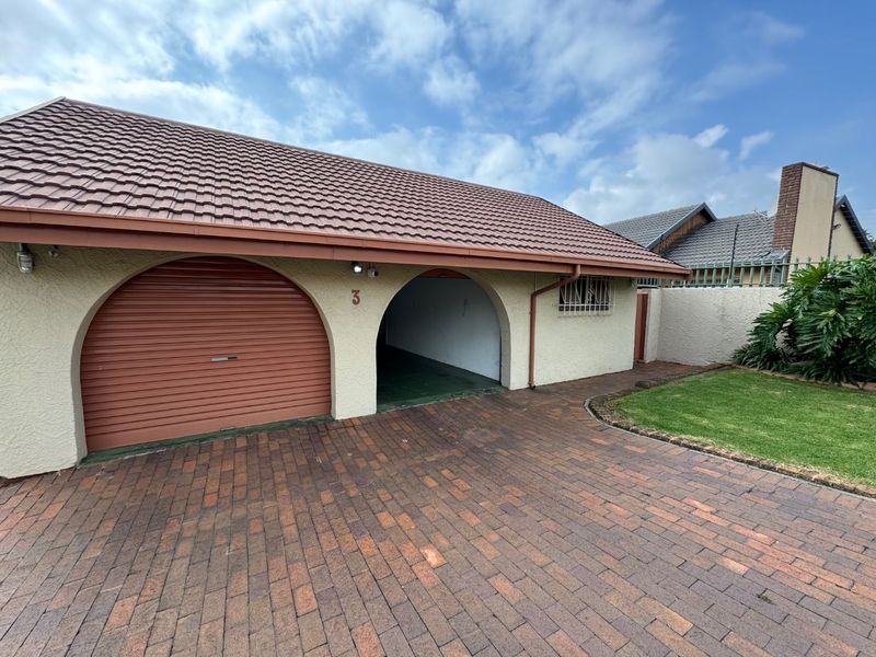 Family-friendly living in a secure, pet-friendly complex near Festival Mall and OR Tambo Airport, with open-plan living, modern kitchen and a large private garden — three bedrooms, full bath.
